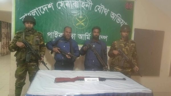 পাইকগাছায় বিএনপি’র সভাপতির বাড়ি থেকে লাইসেন্স বিহীন অবৈধ অস্ত্র উদ্ধার। চরম আতঙ্কে এলাকাবাসী। ডুমুরিয়া খুলনা প্রতিনিধি খুলনার পাইকগাছা উপজেলায় বিএনপির এক ওয়ার্ড সভাপতির বাড়ি থেকে লাইসেন্সবিহীন অবৈধ অস্ত্র উন্নতমানের (এরায়গান)