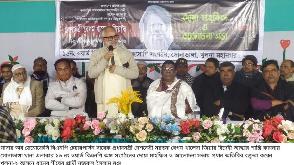 খালেদা জিয়ার রুহের মাগফিরাত কামনায় দোয়া মরতে হলে দেশের মাটিতে মরব বাঁচতে হলে দেশের মাটিতে বাঁচব : মঞ্জু” শেখ মাহতাব হোসেন ডুমুরিয়া খুলনা খুলনা (০৫ জানুয়ারি) তিনবারের প্রধানমন্ত্রী বাংলাদেশের অবিসংবাদিত